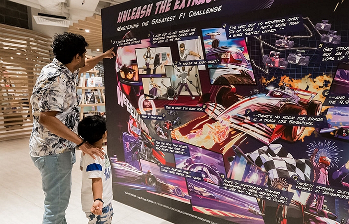 In a collaboration with the National Library Board, Singapore GP will present a specially curated Formula 1-themed showcase on rotation at six public libraries over the upcoming school holidays up till July. Visitors will get to discover the extraordinary abilities of an F1 driver as illustrated by local design studio Lab Six Five and check out the creative photo opportunities on display.