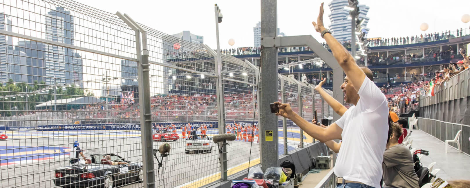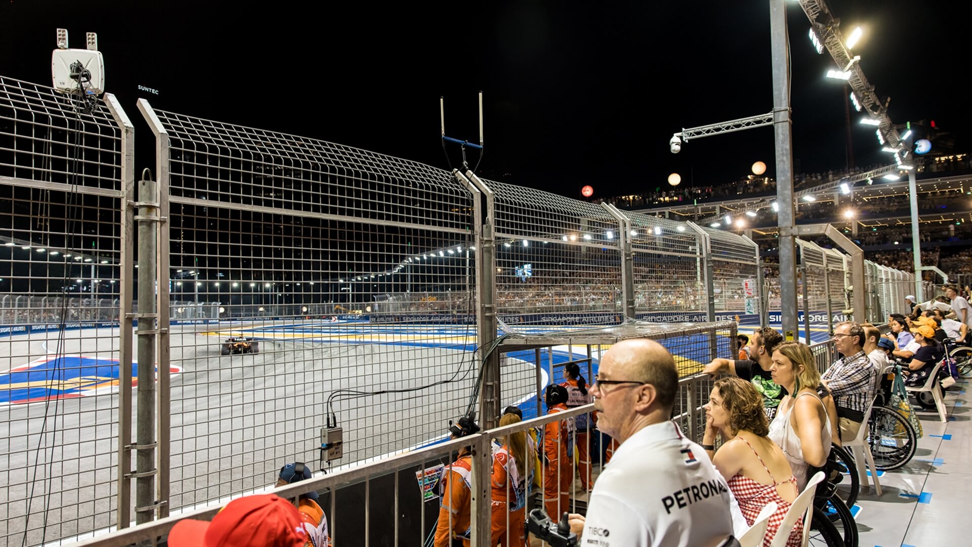 $308Strategically placed at the first turn, patrons in wheelchairs and their companions can witness intense racing action as drivers attempt to outmanoeuvre each other for the best position at Sheares (Turn 1) after decelerating from speeds of up to 290km/h from the Pit Straight.