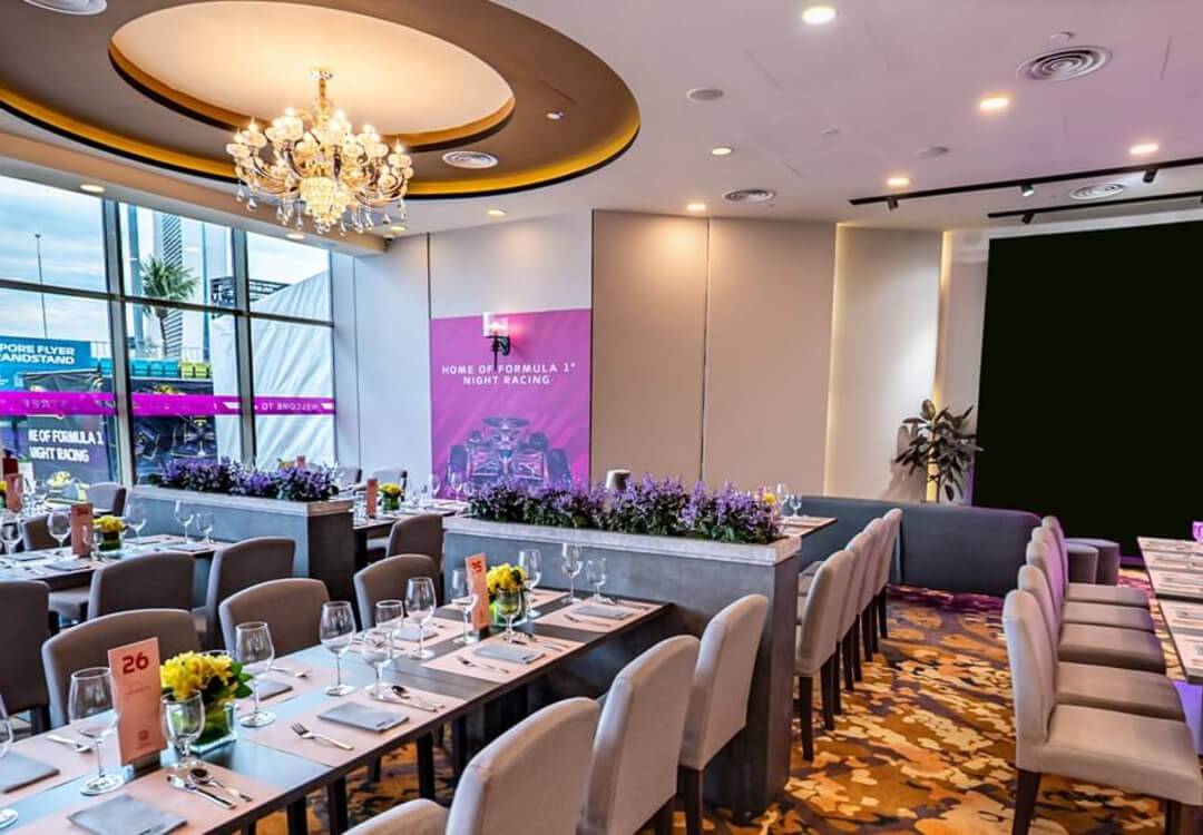 - Situated on the ground floor, in close proximity to a free-seating grandstand exclusively for hospitality guests at the Singapore Flyer