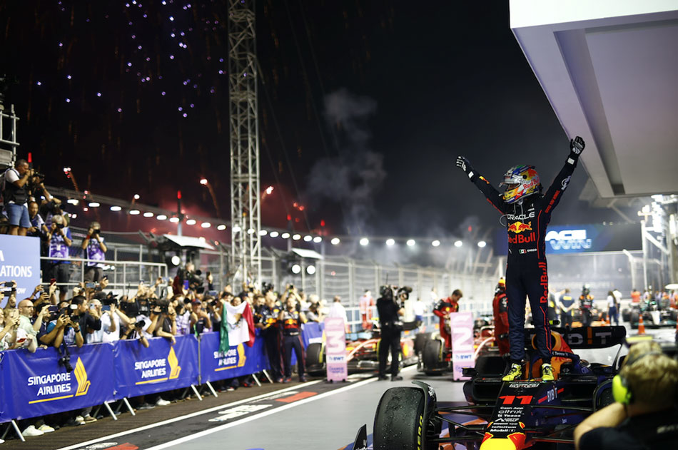 2 October 2022, Singapore – Red Bull Racing's Sergio Pérez has mastered the streets of Marina Bay, with the Mexican winning a thrilling-but-chaotic Formula 1 Singapore Airlines Singapore Grand Prix 2022 under maximum pressure from Ferrari's Charles Leclerc.